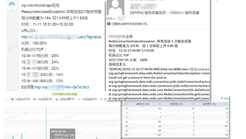 爱奇艺会员服务团队供通用化监控平台,接入方式简单,可快速对系统搭建以上监控体系,并可以面向公司的其他业务团队监控服务。建立完整的跟进机制,多级反馈,提高告警感知,提升排查效率80%以上,预先发现90+次会员客诉问题,客诉率极大降低,监控覆盖400+种异常提供有效告警4800+次。