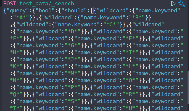 我初步构造了 bool 组合 416个(400+,416是自己随机构造的)wildcard 检索语句。
