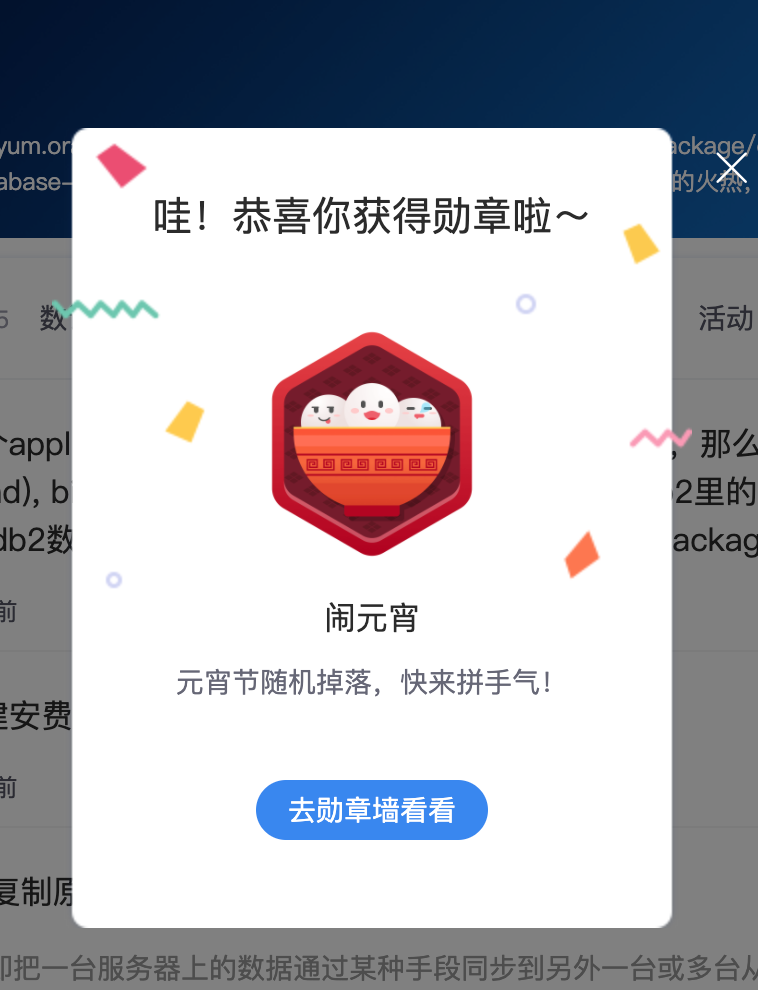 欢欢喜喜闹元宵,明天就是元宵节啦,为庆祝墨天轮勋章体系首次重磅上线,福利君为大家派发出215个限量元宵,首批元宵勋章会由哪些幸运墨友们获得?前10位最先将获得的勋章图片发表在数说的朋友,我们也将为您赠送20墨值的奖励。
