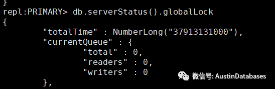 在这些基础的信息后,我们更关注的是性能方面的信息,例如锁,MONGODB 虽然是NOSQL 数据库但实际上也会存在锁有关的情况, 尤其在新版本后支持多文档事务的这样的情况