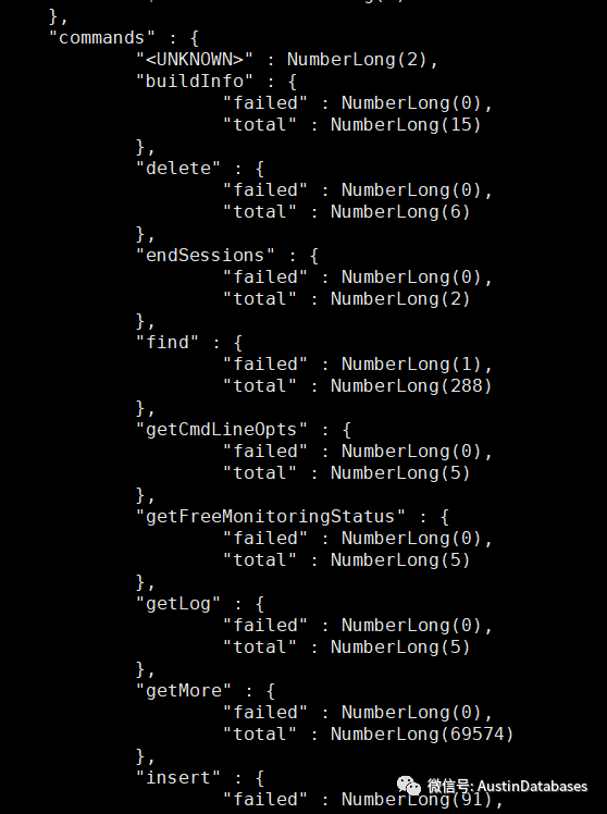例如如果统计每秒的operation 的操作,与执行的命令之间的关系,就需要下面两个参数从db.serverStatus 中提取