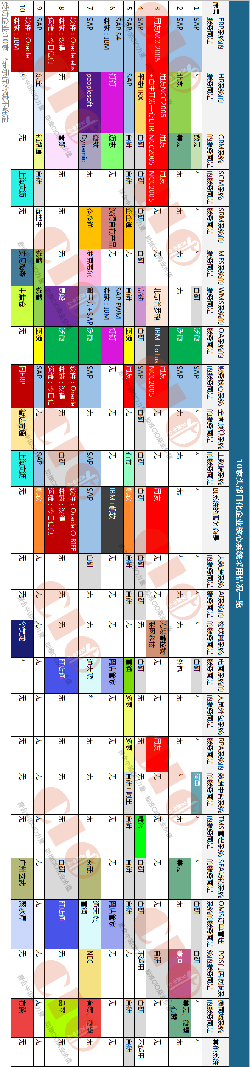 10家国内头部日化企业核心系统采用情况一览
