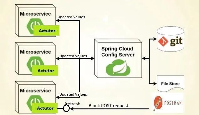 配置服务器允许使用环境特定值。 使用 Spring Profile 区分环境值。 可以使用基于文件或基于 Git 存储属性。 允许对称加密和非对称加密。