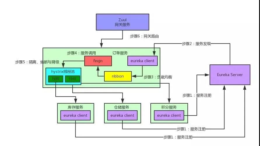 刚好可以结合前面凌乱的知识点,看看 Spring Cloud 这套组件是如何搭建起来的。