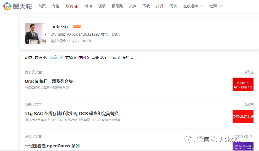 后面的一个多月时间基本每天都按计划练习来进行最后的冲刺,主要是提高手速和形成反惯性训练,让大脑保持在一个活跃的状态,能够应对高强度、长时间的 OCM 考试。在家办公这段时间,也利用一些闲暇时间,逛逛 墨天轮,回答一些上面的问题,写写公众号,分享下技术文章,如有感兴趣的小伙伴可以关注下我,一起学习交流,一起成长。
