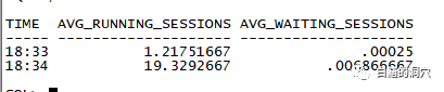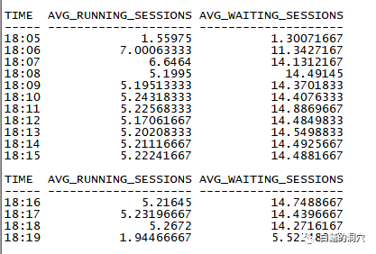 因为资源管理的限制,出现了大量的CPU等待的现象。活跃会话数也被限制在5左右。我们把CPU_COUNT加大到20,再来看看: