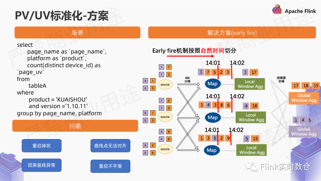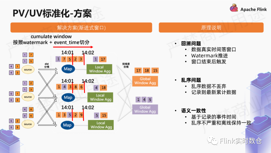 通过localwindow agg做聚合,然后再按照维度合桶global window agg,主要是解决热点key的问题。
