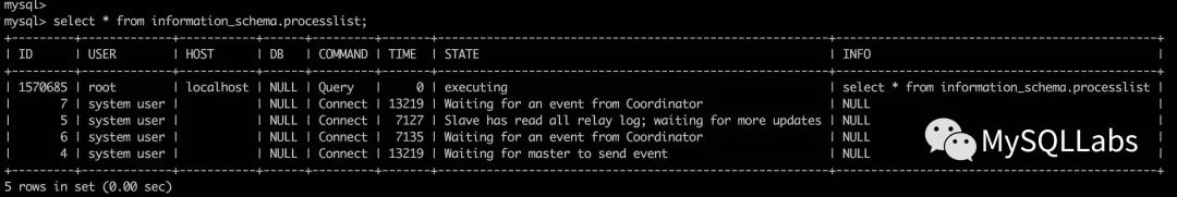 select * from information_schema.processlist;