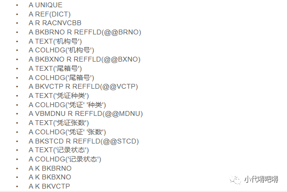 从上面的例子可以看出,PF定义中首先要REF(DICT)引入数据字典,然后定义具体字段时候,REFFLD指明数据字典的基础类型字段。注意的是命名规范要求,具体字段的后4位必须和数据字典基础字段名字一致。