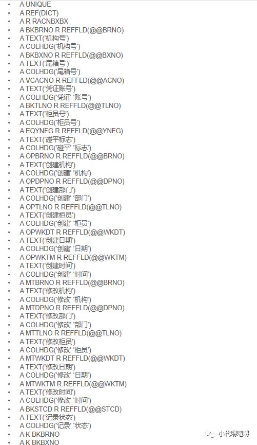 但是,在过去的核心系统中,数据字典的理解往往也会有失误。常见的错误方法,是试图穷举定义所有可以出现的字段名字。可是实际上核心系统应用程序内容是不断扩充的,功能和交易程序都在不停增加,所用到的字段也是无穷无尽。如果需要列举的是所有字段,就像建巴比伦塔一样困难。而且不可避免会出现账号1到账号9这样的重复。