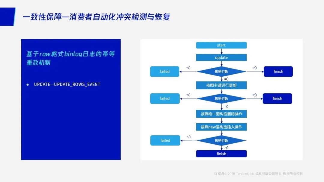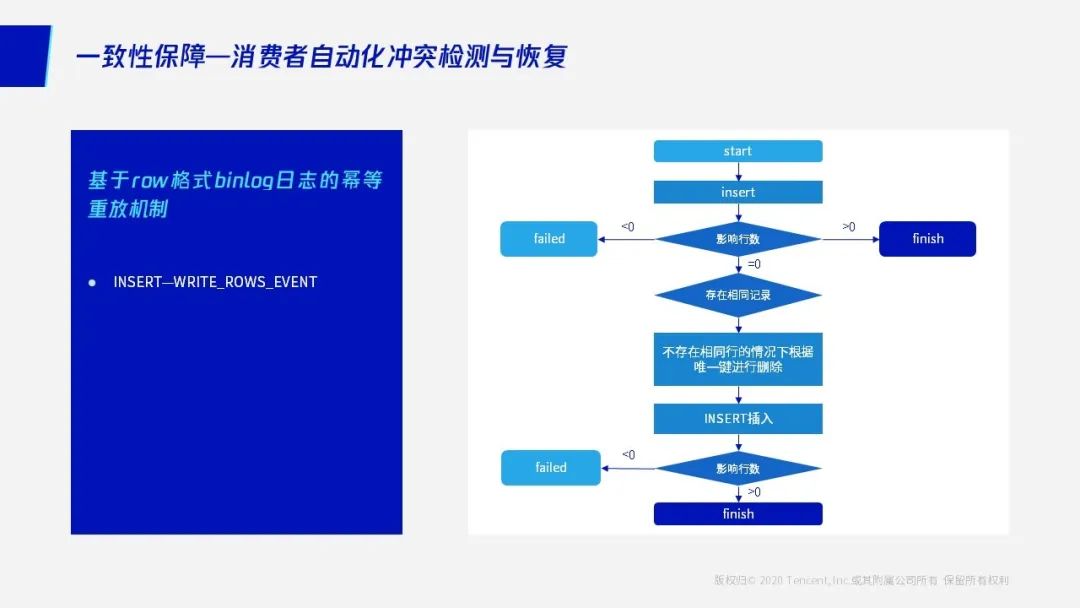 consumer:日志消费和重放模块,负责从消息队列中将CDC消息消费出来并根据配置重放到目标实例上。这里因为producer端采用at-least-once模式生产,因此消费者这里实现了幂等逻辑保证数据重放的正确。
