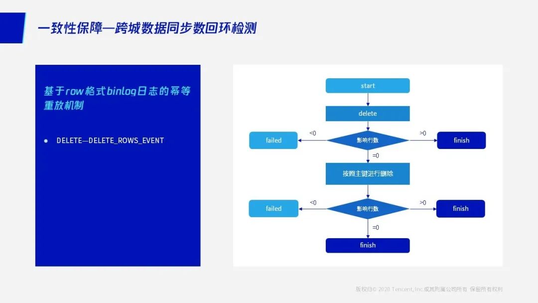 这个过程中,delete结束后大于0就成功;小于0就是失败;等于0的时候认为它可能没有匹配到行,这个时候我就按照主键操作——因为删除的操作最终的结果就是目标一定没有了当前删除的消息主键所标识的这一行——这条操作完成后,DB里一定没有这行数据,因此仅仅是按照主键进行删除就可以了。这个时候如果影响行数大于0,则删除成功。如果等于0,就认为按照主键去匹配,本身删除不到,匹配不到——意思是本身目标就没有这条要删的主键所标识的数据——所以实际上它的结果跟要做完删除的结果,影响是一样,也就结束这一条删除的幂等。