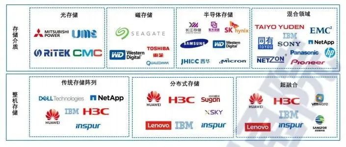 数据中心的存储承载的是千行百业的高价值数据,单个硬盘的容量、可靠性、性能无法满足高价值数据对存储的诉求。数据中心底层物理存储介质主要有光、磁、电三种,对应的存储产品类型可分为光存储、磁存储和半导体存储三大类。