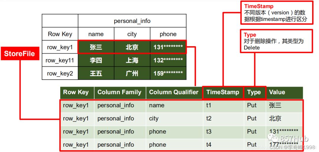 用于标识数据的不同版本(version),每条数据写入时,如果不指定时间戳,系统会自动为其加上该字段,其值为写入 HBase 的时间。