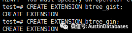 下面我们创建索引了,创建GIN索引,创建索引中系统报错,这是由于还没有创建相关的扩展