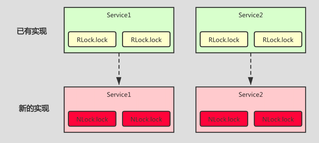如果说我们直接使用 redisson 的原生 API 做加锁,那么很多地方都会出现 RLock 相关的代码,突然有一天,由于某些原因,需要将锁进行替换,这个时候改动的范围就比较大了。每个使用了 RLock 的地方都得改。
