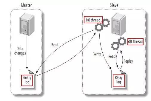 SQL slave thread处理该过程的最后一步。SQL线程从中继日志读取事件,更新slave的数据,使其与master中的数据一致。只要该线程与I/O线程保持一致,中继日志通常会位于OS的缓存中,所以中继日志的开销很小。