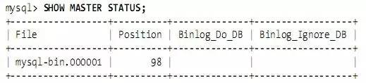 重启master,运行SHOW MASTER STATUS,输出如下: