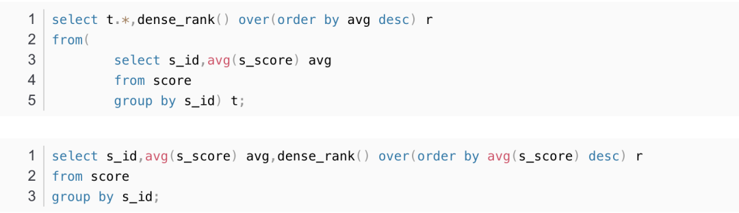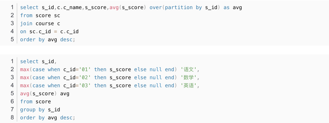 17、按平均成绩从高到低显示所有学生的所有课程的成绩以及平均成绩(重重点与35一样)