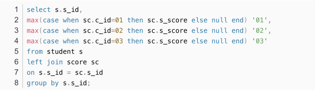 1、查询课程编号为“01”的课程比“02”的课程成绩高的所有学生的学号(重点)