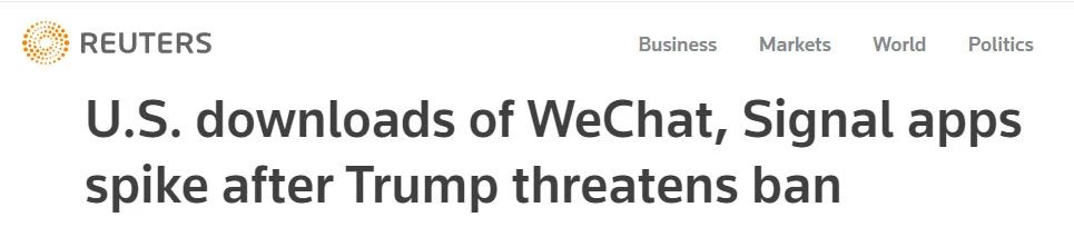 More users in the United States downloaded chat app WeChat and its encrypted alternative Signal, after President Donald Trump threatened to ban WeChat, owned by Chinese company Tencent, according to Sensor Tower data shared with Reuters on Thursday.
