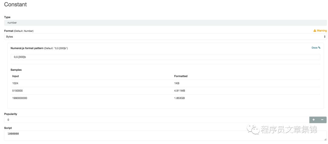 其中,Fields中显示的是elasticsearch已聚合好的字段,即默认的字段。在Scripted fields中可自定义添加字段,该字段仅仅用作可视化作图的辅助功能,实际上不对数据进行修改。例如,在visualize图中设置一条静态的阈值线,可点击Scripted fields下的add添加一个字段,会弹出一个配置界面,自定义name、Format、Script值,