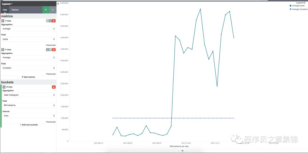 l Average 这个聚合返回一个数值字段的average。从下拉菜单选择一个字段。