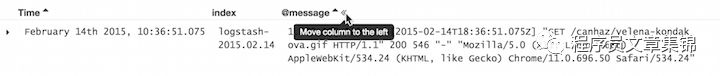 文档表格会默认显示当前选择的索引模式中定义的时间字段内容(转换成本地时区)以及_source文档。可以从字段列表添加字段到文档表格。
