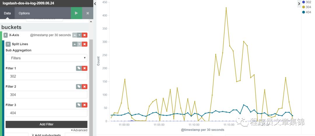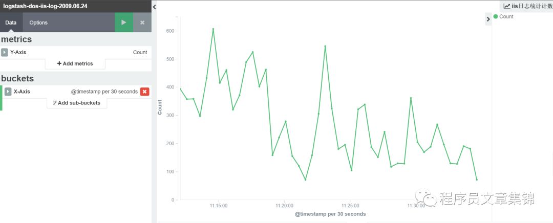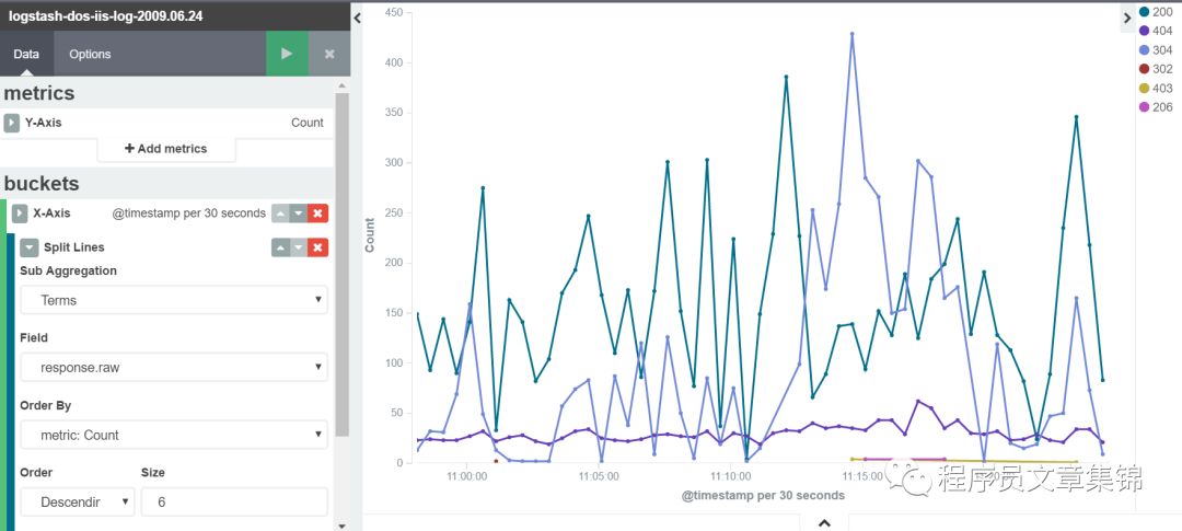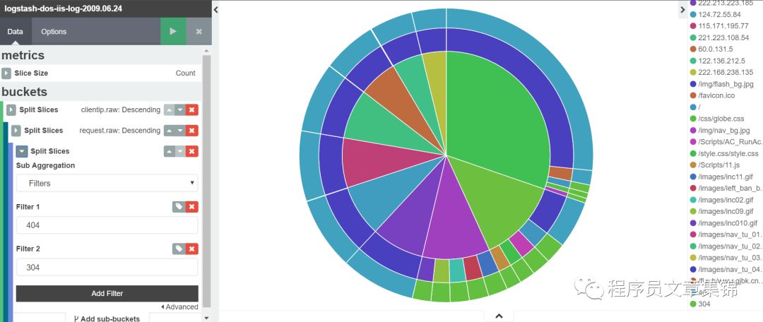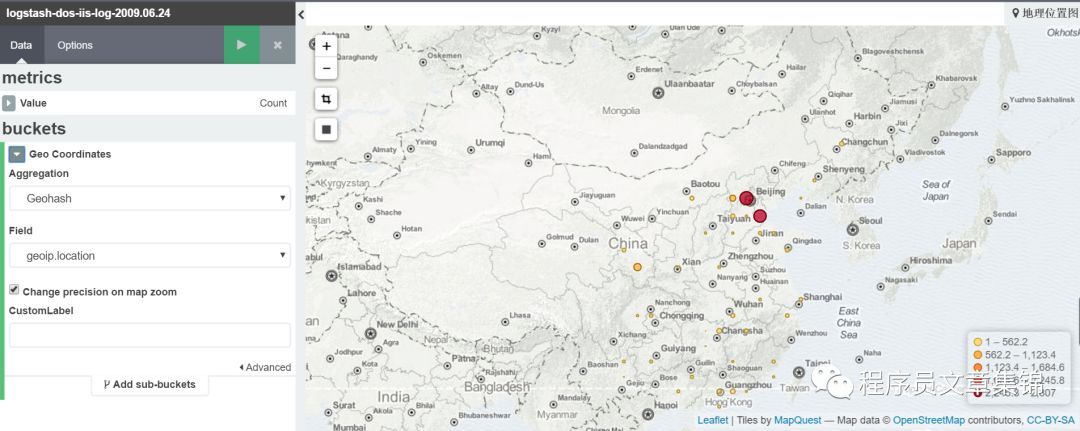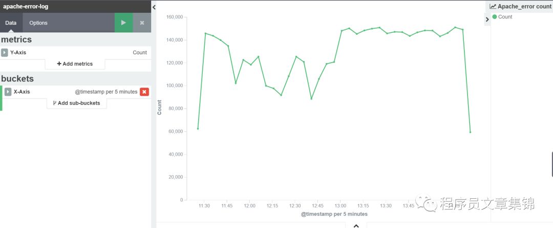1直方图的 Y 轴是数值维度,图形的 X 轴是buckets 维度。类似折线图,可以选择字段用terms、filters等过滤。