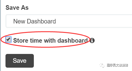 在Dashboard标签页上,将多张保存好的可视化图表的添加在一页上,点击保存,可以自定义一个Dashboard name,同时可选择Store time with dashboard,即将设置好的time filter同图表一起保存,下次打开时无需再手动设置时间过滤,就可以加载上次保存时的图表的时间设置。