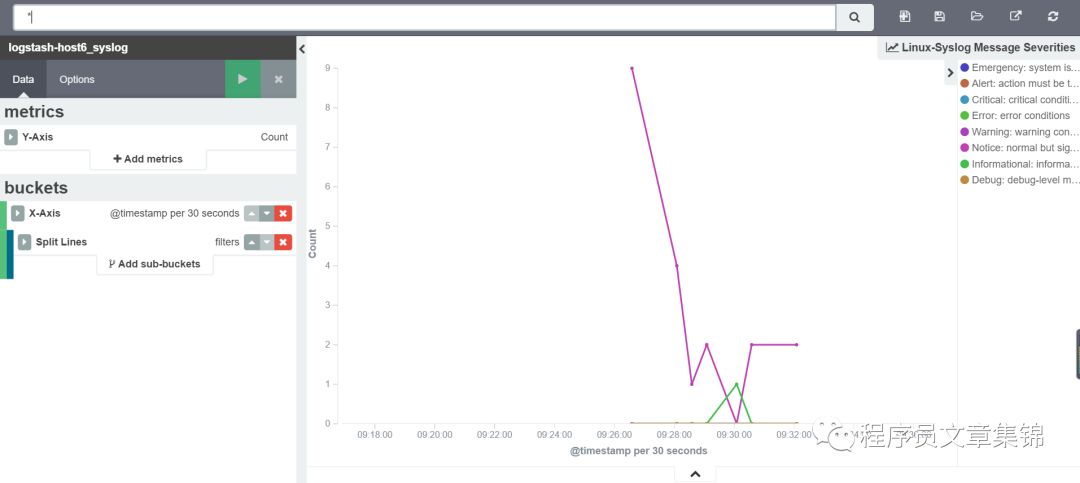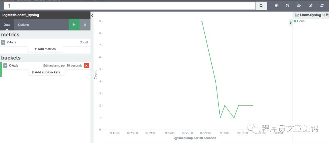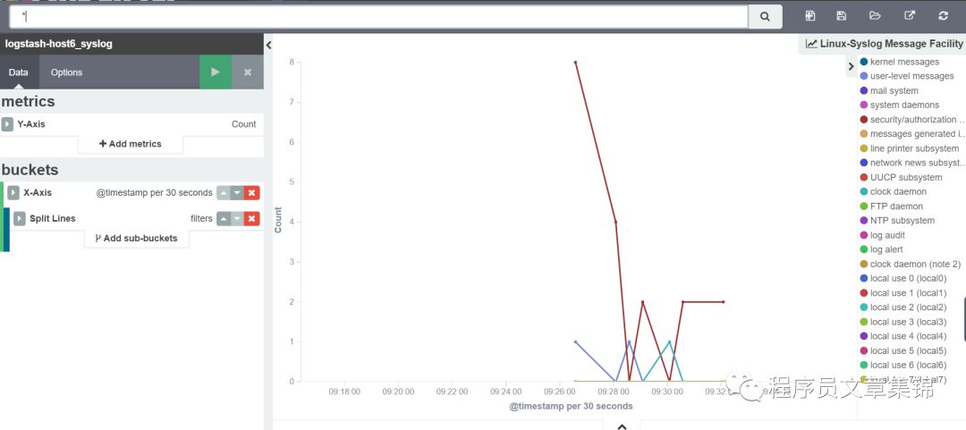 第三步,进入visualize标签中,做出linux的syslog计数。