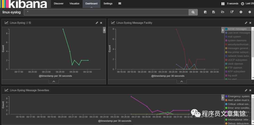 第五步设置自动刷新,设置相对时间,20min到现在,每隔5秒钟自动刷新一次。即可实时监控linux的syslog日志。