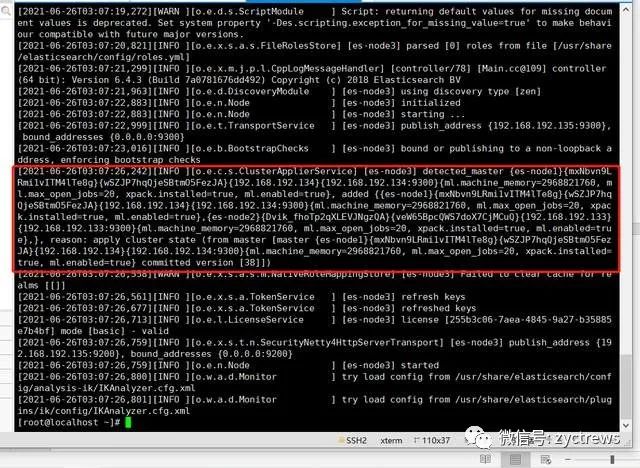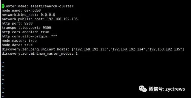 其他两台虚拟机一样只需要修改/elasticsearch.yml配置文件