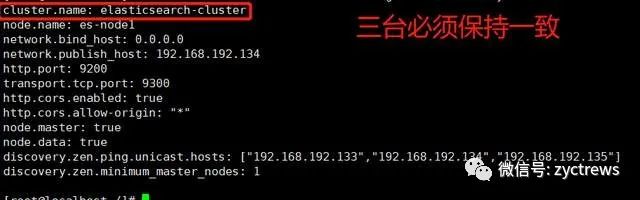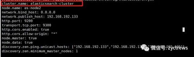 cluster.name: elasticsearch-cluster #集群名称必须一致