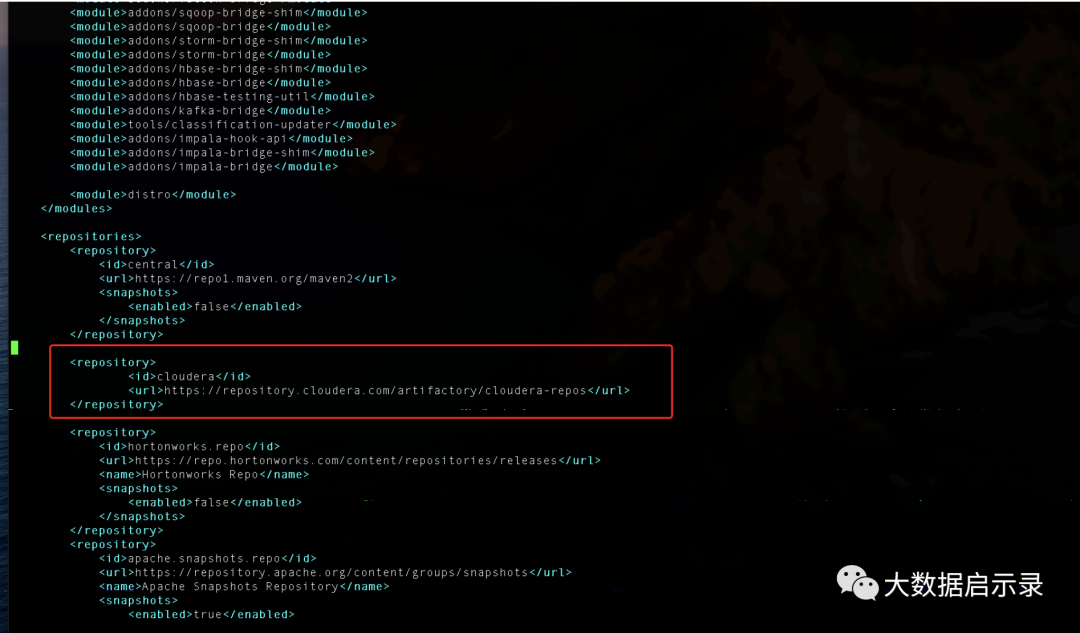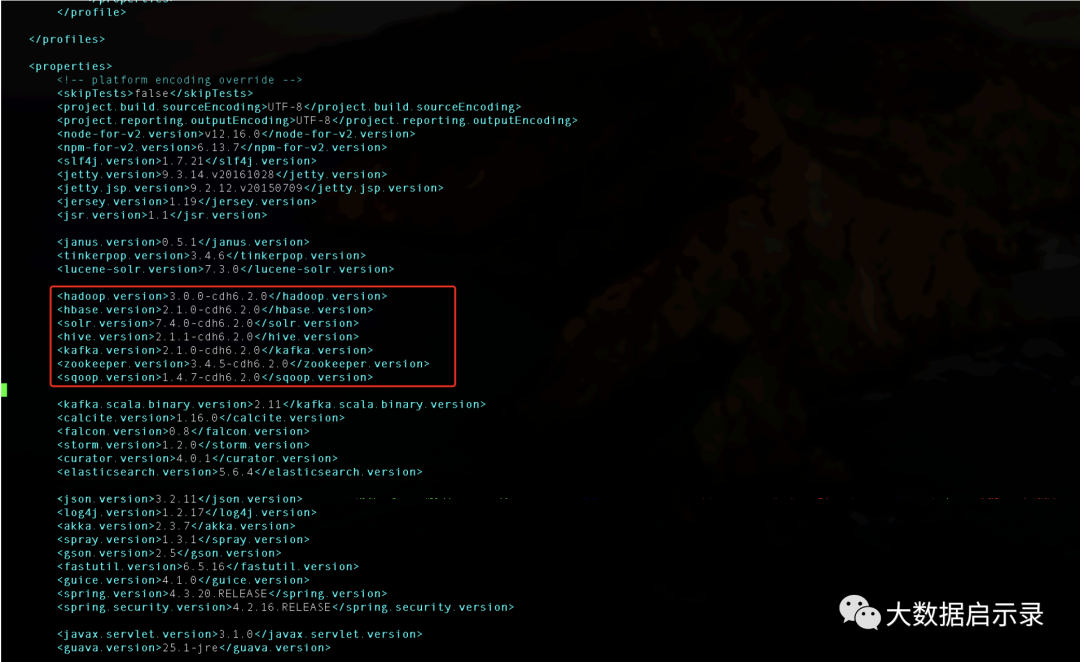 # 下载wget https://dlcdn.apache.org/atlas/2.1.0/apache-atlas-2.1.0-sources.tar.gz --nocheck-certificate#pom.xml<hadoop.version>3.0.0-cdh6.2.0</hadoop.version><hbase.version>2.1.0-cdh6.2.0</hbase.version><solr.version>7.4.0-cdh6.2.0</solr.version><hive.version>2.1.1-cdh6.2.0</hive.version><kafka.version>2.1.0-cdh6.2.0</kafka.version><zookeeper.version>3.4.5-cdh6.2.0</zookeeper.version><sqoop.version>1.4.7-cdh6.2.0</sqoop.version># pom.xml<repository><id>cloudera</id><url>https://repository.cloudera.com/artifactory/cloudera-repos</url></repository>