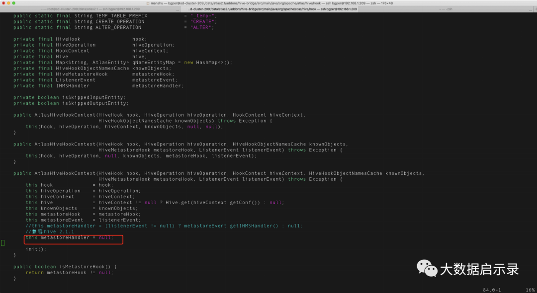 org/apache/atlas/hive/hook/AtlasHiveHookContext.javathis.metastoreHandler = (listenerEvent != null) ? metastoreEvent.getIHMSHandler(): null;改为:this.metastoreHandler = null;