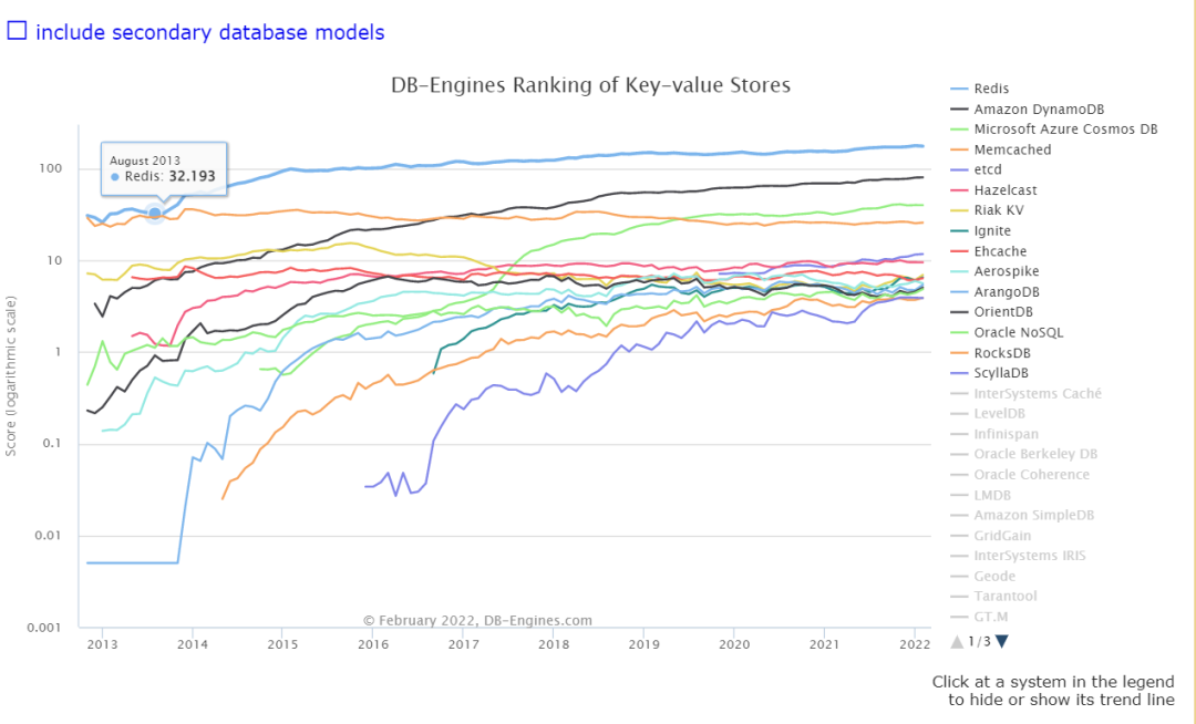 接下来看一下较为常见的数据库的分数趋势变化图: