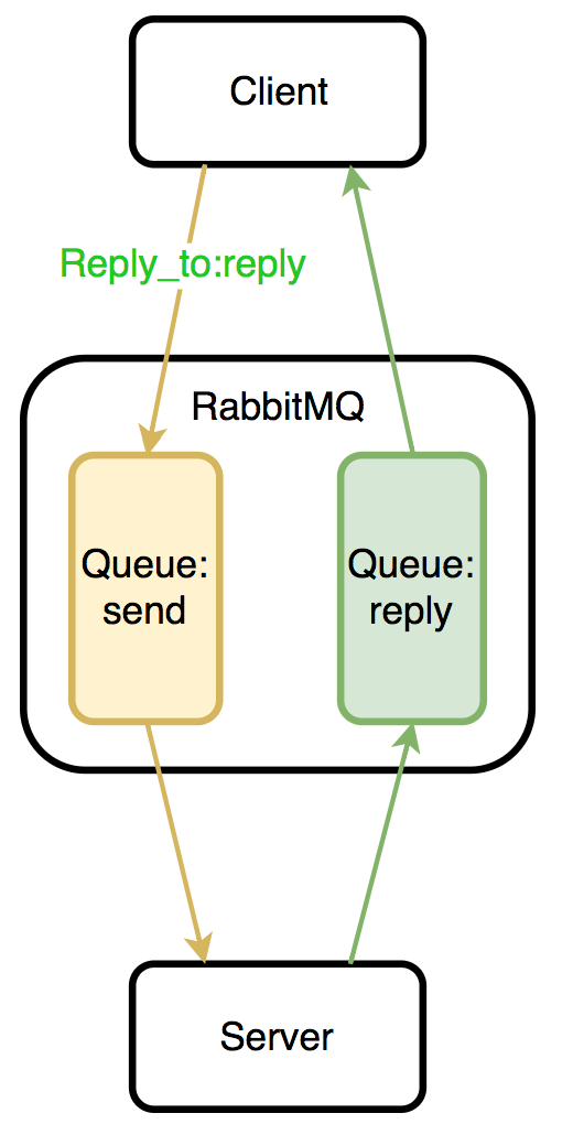 一般的异步服务间,可能会用两组队列实现两个服务模块之前的异步通信,有趣的是RabbitMQ就内建了这个功能。