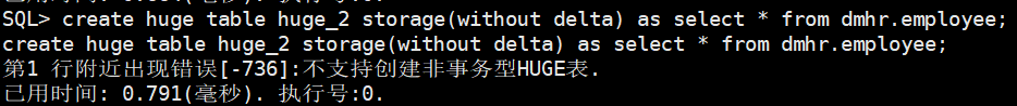 需要将参数HUGE_WITH_DELTA修改为0,否则不支持创建非事务型HUGE表。