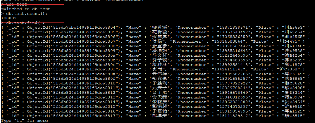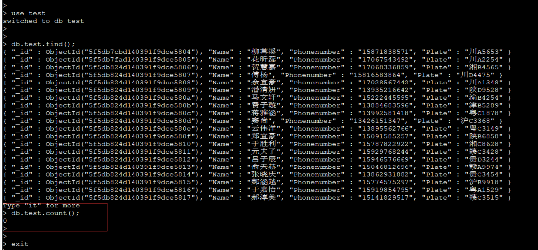 启动数据库,但是我们发现此时导入的数据可以find,但是count为0,如下图: