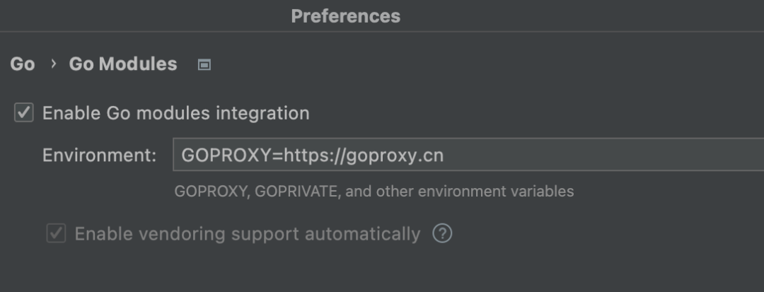 不过更新Go modules很慢,最好配置一下代理。点击Goland->Preferences -> Go modules 进行配置,配置如下: