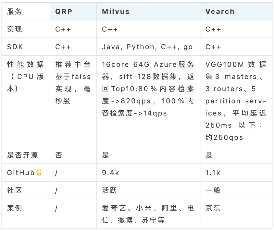 本文已大致介绍了爱奇艺推荐中台关于在线向量召回服务的工程化实践过程。对于推荐中台,对服务进行通用化、平台化抽象,提升业务方服务构建效率,亦是提升业务迭代速度,协助业务方提升推荐效果的关键一环。在线向量召回服务的工程化落地过程中,有一些关注点:(1)底层检索引擎的选型,我们认为 Milvus 数据库与 vearch 各有优势,如milvus在SDK上较为丰富,在与不同语言的后端服务进行对接时有较好的优势,其活跃的社区也让其一些问题的解决更为快速。而 vearch 在 embedding 数据量巨大时(如 6亿条 128维向量数据)会更为适用,但在耗时上也会更高一些。(2)服务性能和稳定性是重中之重,这是线上推荐引擎服务能否良好运作及推荐效果是否能得到提升的关键之一。(3)将 query embedding 的推理过程与top N 的召回过程进行统一,能够为业务方接入得到最大提效。(4)模型会更新,对应的 embedding 数据也会更新,因此服务需要考虑数据版本的管理,这也是业务诉求之一。(5)考虑实时 embedding 内容的入库问题当然,在向量召回服务还是可以继续进行不断优化的,例如:(1)embedding 的生成算法有很多,可以考虑将业务上需要的生成模型不断内置化;(2)在不同召回率的情况下,可以继续对高 QPS 下的响应性能进行优化。