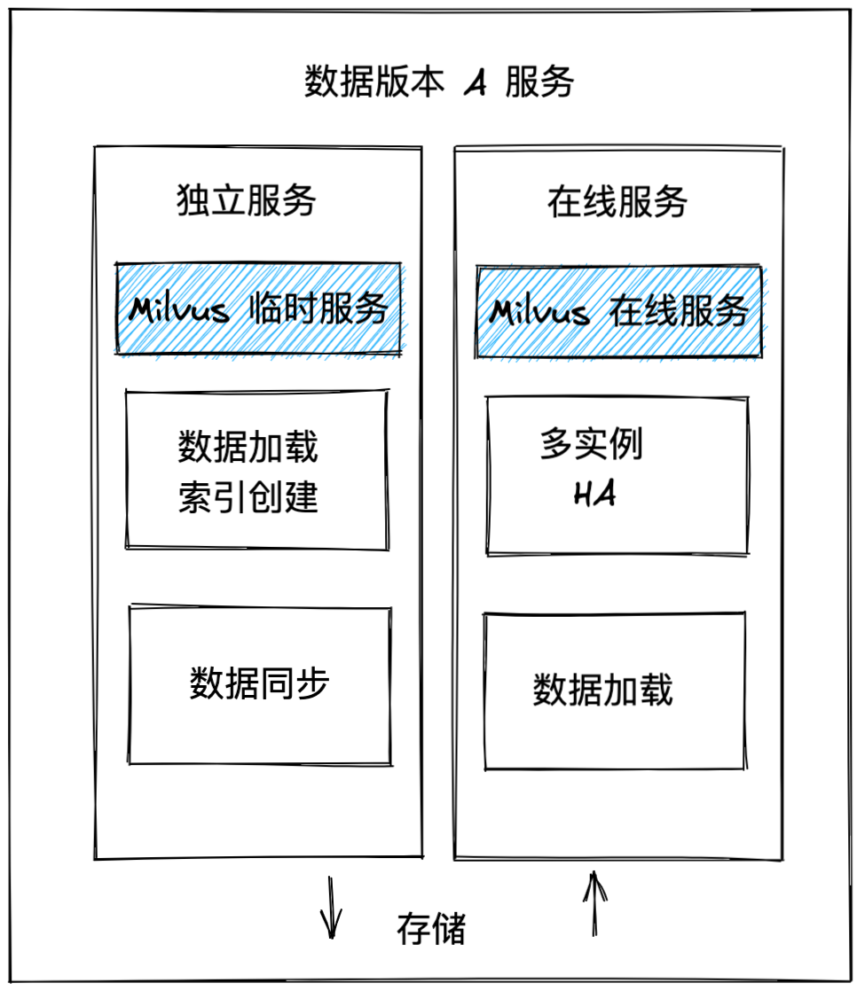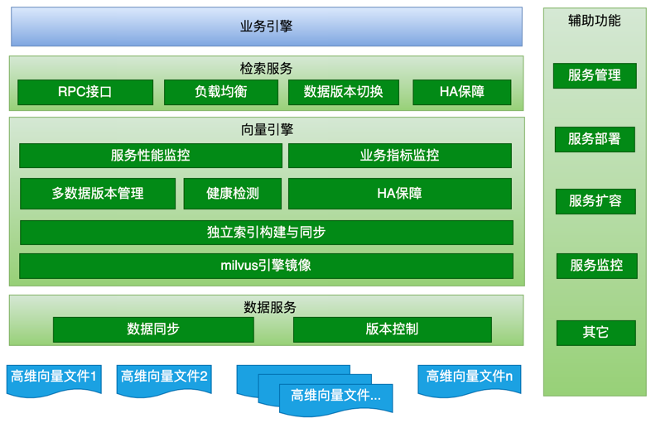 如果我们基于图3,来看向量召回服务的接入过程,将会得到图4 的结果。算法工程师将基于业务特点,进行算法编写并产出 embedding,同时,系统研发工程师和算法工程师将协作搭建起在线的向量召回服务,供推荐引擎调用,推荐引擎负责线上所有用户的推荐,其对性能的要求是非常高的,因此向量召回服务的性能也极其重要。对于不同业务而言,如果向量召回服务没有通用化与服务化,则不同业务的算法与系统开发工程师各自需要重复搭建,且需要自行进行服务运维,这无疑是增加了推荐开发工程师的负担,也是对开发效率的损耗。对于单业务支撑而言,我们只需考虑如何搭建起一个向量召回服务,从而能对海量 embedding 数据进行 top N 检索,同时保证服务的高性能即可。而对于推荐中台而言,在服务于多业务的情况下,需要在此基础之上再考虑如何将这个服务的搭建与运维简易化、自助化、自动化以及平台化。近似最近邻算法(ANN)目前是对海量高维向量求 TOPN 相似内容的主流算法。而 Facebook 实现的 C++ 库 faiss 也是经常被使用的 lib,基于 faiss去实现向量召回服务是一个选择。此外,业界常用的开发框架 vearch和 Milvus 数据库也是可选的服务之一,图5 是服务选型对比。Milvus 数据库本身是为海量特征向量的近似最近邻搜索而设计,相比于 faiss 这样的算子库,其提供了完整的向量数据更新、索引与查询框架。Milvus 数据库也支持利用 GPU 进行索引加速与查询加速,可大幅提高单机性能。目前 Milvus 也已经得到了头部机器视觉公司的技术认可,技术社区氛围活跃。vearch 是一个分布式向量搜索系统,可以用来计算向量相似度,能应用于图像识别、视频识别或自然语言处理等机器学习领域。vearch 也是基于 faiss实现,提供了快速的向量检索功能。其提供类似 elasticsearch 的 restful api,可以方便地对数据及表结构进行管理查询等工作。自实现服务与开源框架的功能基本类似,且基本都是基于 C++ 实现。对于 0-1 的服务搭建,以及在充分借力社区效率的考量下,在已有的服务框架下进行开发是个不错的选择。在综合考虑各服务实现的 sdk 丰富度、性能指标、是否开源,开源社区是否活跃,再结合业务上推荐引擎使用 java 语言实现的比例越来越高,最终选用 Milvus 框架来实现在线向量召回服务。在构建在线向量召回服务时,我们考虑到算法同学经常会针对不同场景去调整算法实现,因此,只通过封装并内置某些 embedding 算法实现,会使算法同学产生束缚感。因此,我们设定了 embedding 模型的 schema,并当算法同学在推荐中台上创建了服务后,开放给算法同学一个指定路径供存放 embedding 模型,此后,在设置一些必要参数后,可在推荐中台上启动在线向量召回服务,并暴露出规范接口供推荐引擎调用。其具体设计如图6 所示,在向量检索引擎上,推荐中台与爱奇艺深度学习平台进行了合作共建。基于 Milvus 框架,我们进行上层应用构建,来降低推荐业务开发同学的搭建成本;支持数据版本管理,来提高业务侧稳定性;支持多机房部署与服务健康检测机制,提高底层容灾能力。在使用过程中,我们也发现了一些问题。例如,Milvus 数据库在索引构建时 CPU 使用率会非常高,导致查询服务基本不可用,针对这个问题,我们也进行了解决,当我们进行数据版本更新时,我们会另起一个服务单独更新,而当更新完成时,会进行线上服务的替换,线上数据版本会保留最近 2 个版本。如图7 所示。图7 解决 Milvus 索引构建时 CPU 使用率过高问题考虑到业务推荐引擎使用 java 语言实现的比例越来越高,而 Milvus 数据库的查询接口以 grpc 接口为主,因此,我们在其之上进行了 dubbo 接口的封装,便于 java 服务框架进行接入,这会在很大程度上简化服务的接入难度。通过 dubbo 服务发现,也实现了多机房部署对业务侧的无感知。