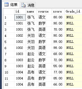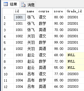 现需求在student表上增加的Grade_id对应赋值,语句如下 :