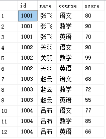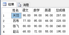 select name 姓名,max(case course when '语文' then score else 0 end ) 语文,max(case course when '数学' then score else 0 end ) 数学,max(case course when '英语' then score else 0 end ) 英语,sum(score) 总成绩from studentgroup by name