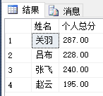 select name 姓名,sum(score) 个人总分from studentgroup by name