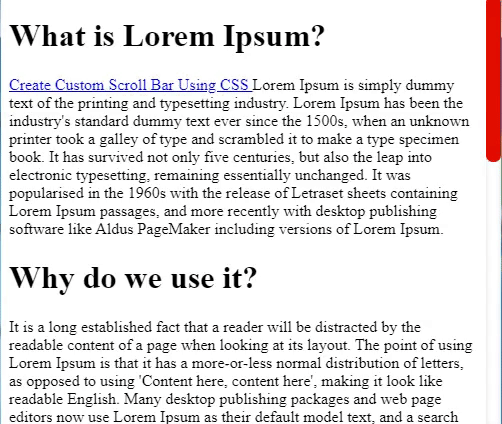 为了创建自定义滚动条,你需要在网页上有一些可滚动的内容。一般来说,你不需要为自定义滚动条创建任何特殊的HTML。如果网页中已经有滚动条,那么可以直接跳过HTML,去阅读后面的CSS样式指南。当然,如果页面上没有任何元素,你也可以尝试以下可滚动框:只需保留一些内容即可。