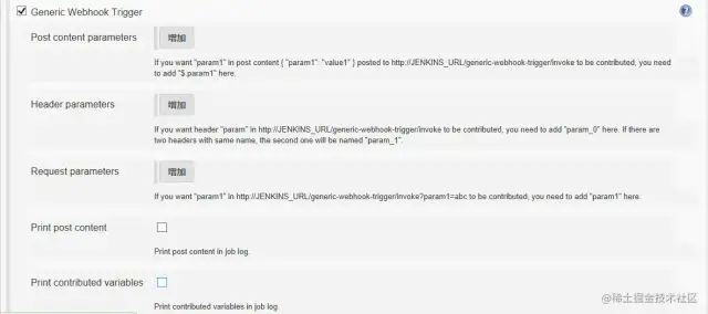 上图中的 URL 格式为 http://<User ID>:<API Token>@<Jenkins IP 地址>:端口/generic-webhook-trigger/invoke