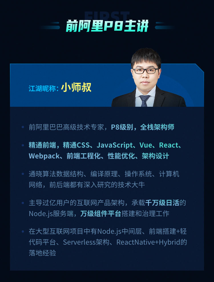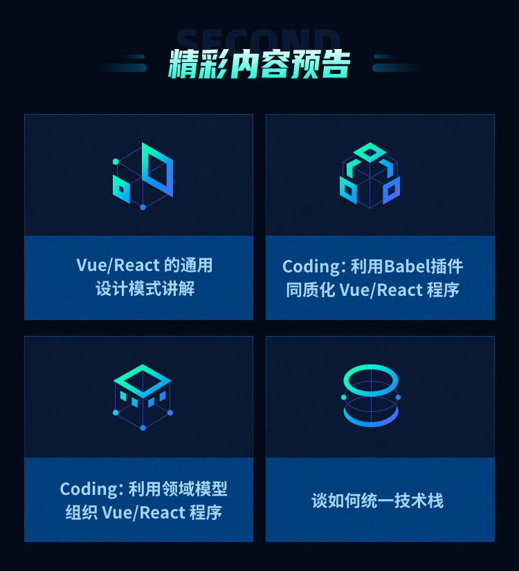 这里送给大家一个 0元 公开课《React、Vue架构和风格统一》,主讲老师为前阿里P8全栈架构师,他将通过对Vue/React通用设计模式的讲解以及带大家写同质化Vue/React程序等方式,解决上述两个问题。