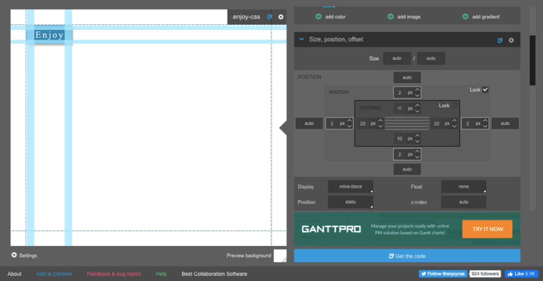 在线版的 CSS3 代码生成工具,基于可视化操作,能快速无编码的环境下调整网页效果和图形样式。就像是在本地使用 PS 或 AI 软件一样。